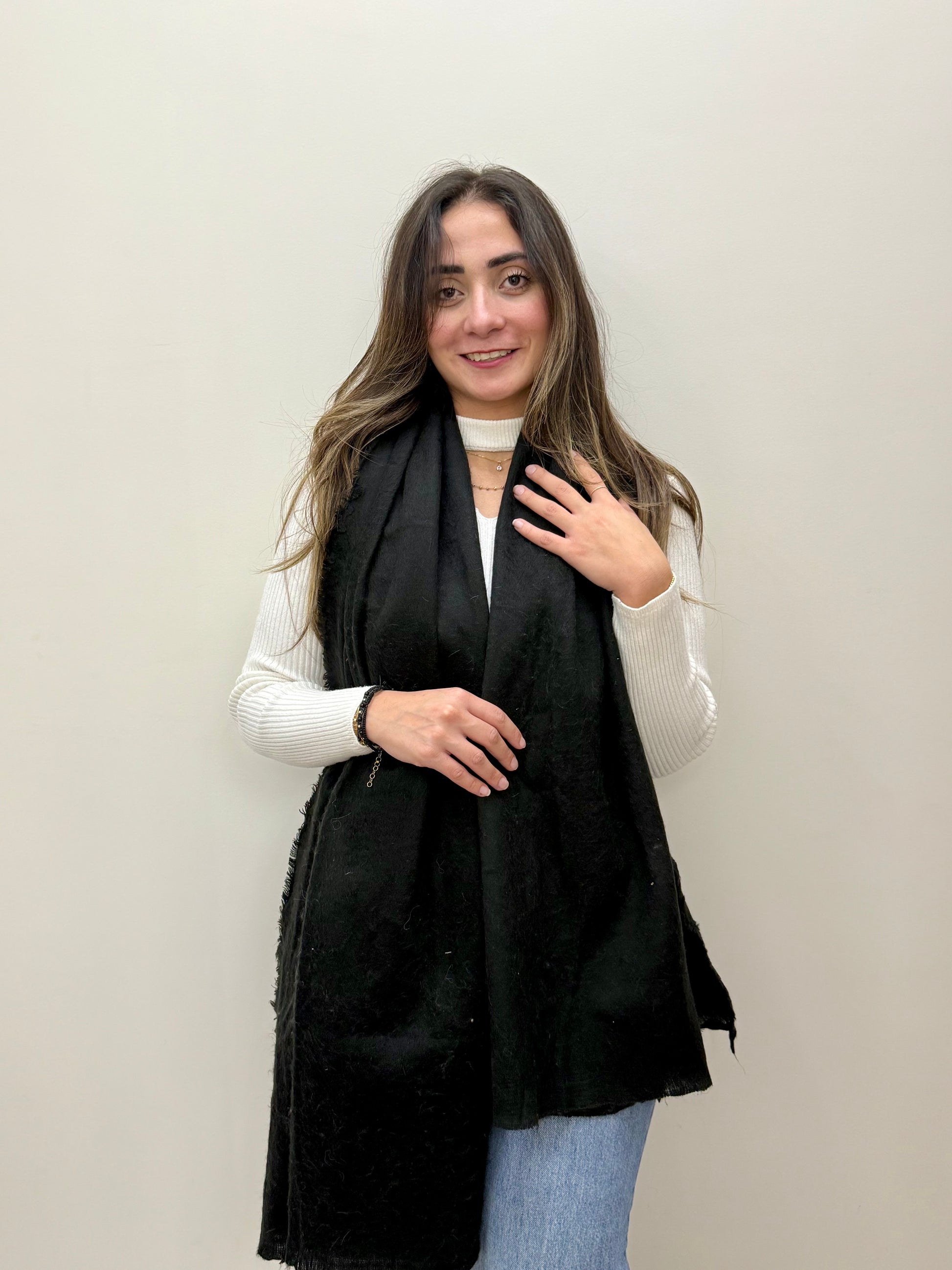 Despite its light weight, mohair provides impressive insulation, making this scarf perfect for chilly days without feeling heavy. The material is gentle on the skin, comfortable for long wear, and offers a refined, cozy look that suits both casual and dressy styling.